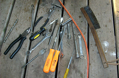 ![]() 3) Brush the tools with a wire brush. |