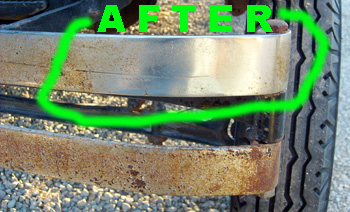 ![]() Rust Removal: Here's the bumper after applying USA Fluid, light wire brushing for several seconds and wiping with a clean rag. |