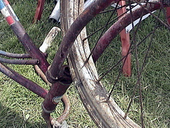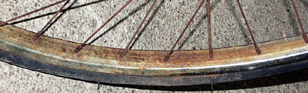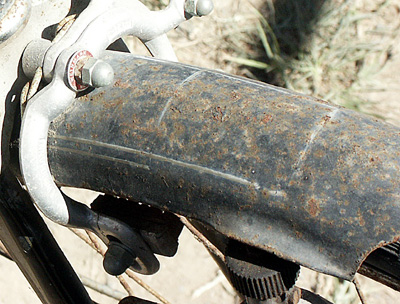 Antique JC Higgins bike fender is Lead Based Paint. Shown Before and