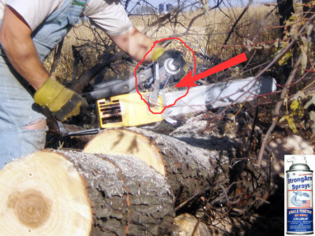 USA Fluid Eliminates ALL of that. It keeps the chain cutting during these times the pump quits pumping, and saves fuel, prevents the binding, overheating, engine, bar and chain wear, all of which will end up costing over $50 in parts to remedy. A penny's worth of strong arm before each cut eliminates all of that, as well as the down time. |