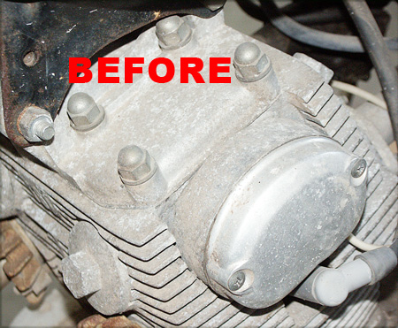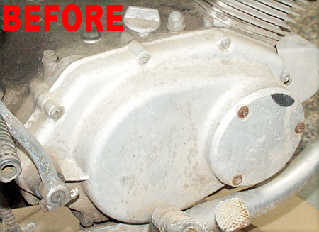 ![]() The crankcase Before USA Fluid Brand, showing the corroded aluminum and rusty hardware. |
