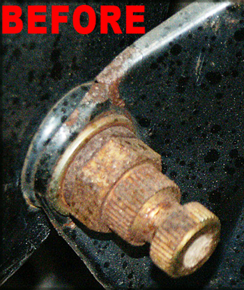 ![]() Here's the close up detail on the headlight nut showing the ratty rusty condition before. |