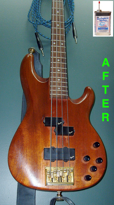 Shown here is treatment on an 80's Fender Electric Bass Guitar and