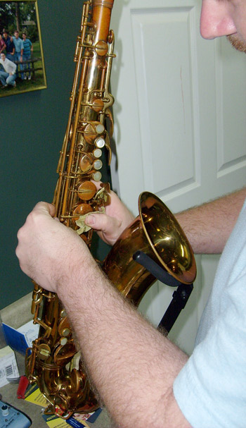 ![]() Improved sound and tone is immediately achieved. All the components of this Sax now work properly again. The treatment was only about a half dozen drops onto several places. The rest of the USA Fluid was spread about with the wetted small rag. |